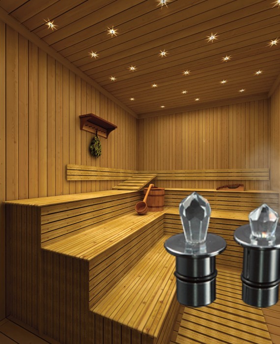 The SCC20 crystal ceiling kit includes 20 crystal fittings in 2 different sizes to give a varied lighting pattern on the ceiling, and 20 fiber optic glass tails @ 13ft.