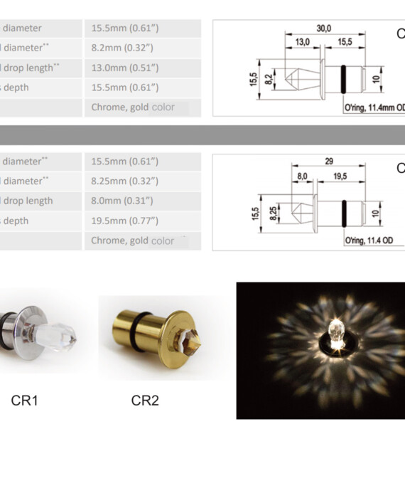 The purest and most finely cut crystal parts are used to make the end fittings within these kits, which cast dramatic reflections onto the ceilings and surrounding walls.